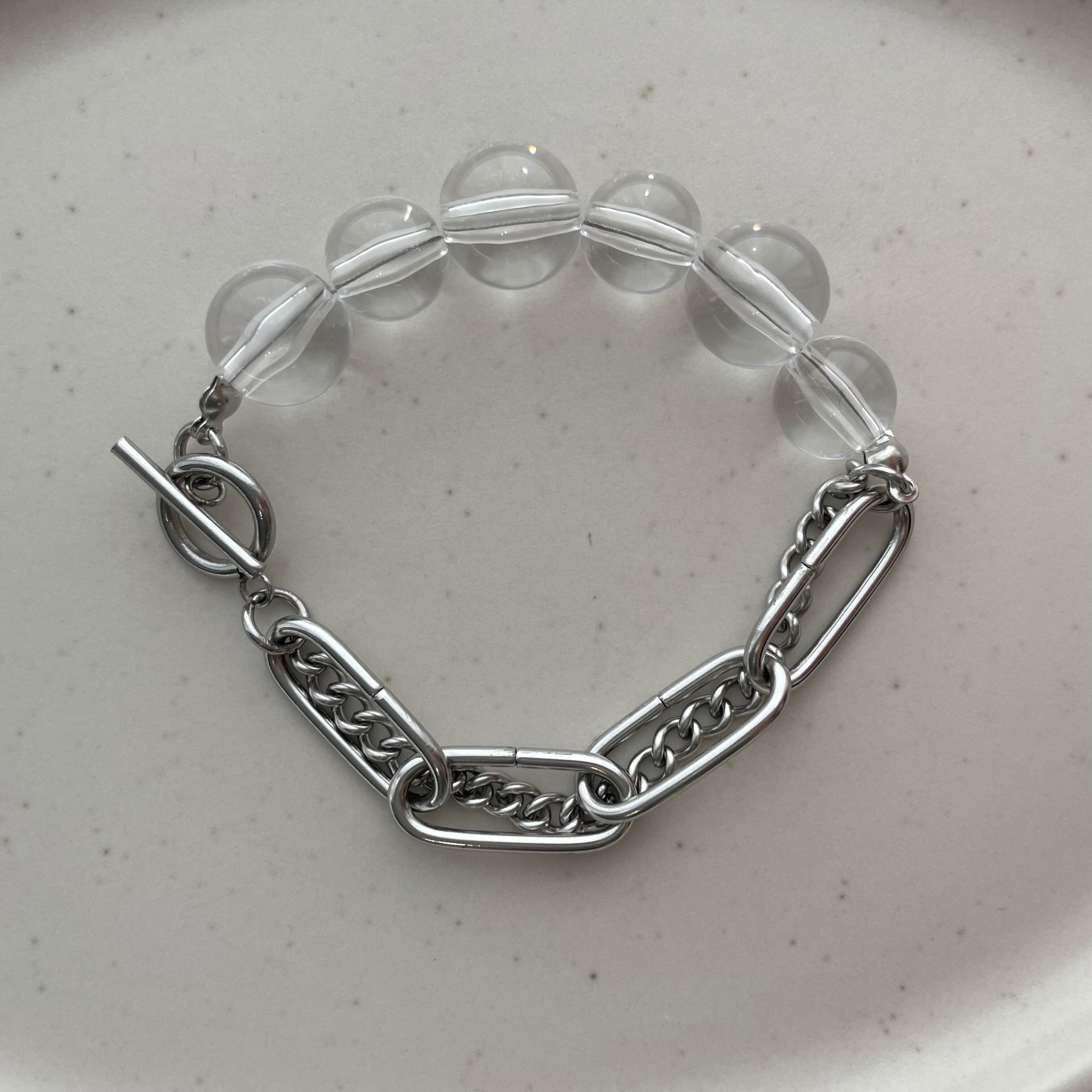 ビーズとステンレスチェーンのブレスレットです。